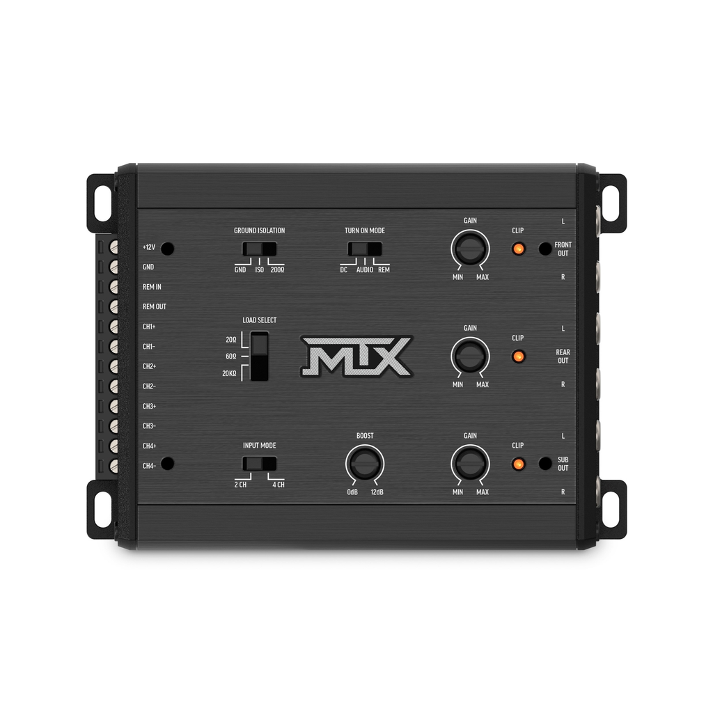 The MTX ThunderLink TL-4.5L is a 4-Channel In / 5-Channel Out Line Output Converter designed to bridge modern factory audio systems with aftermarket amplifiers. With high-voltage speaker-level input handling, intelligent load options, and multiple turn-on modes, it delivers a strong, clean preamp signal while keeping factory systems happy and fully functional.